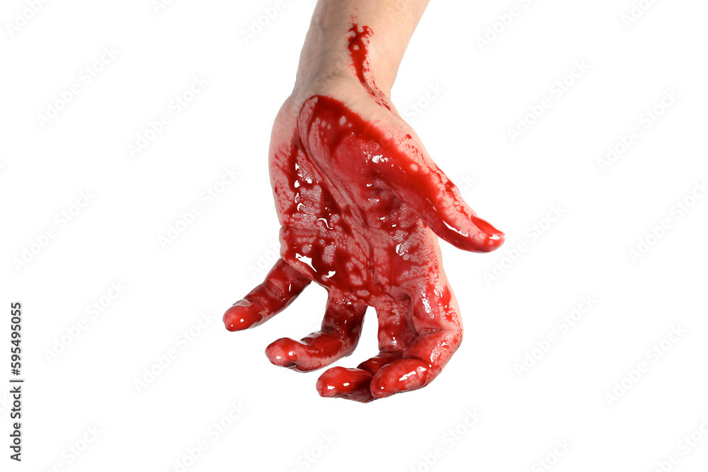 bloody hand isolated on a white, concept of murder, violence, halloween