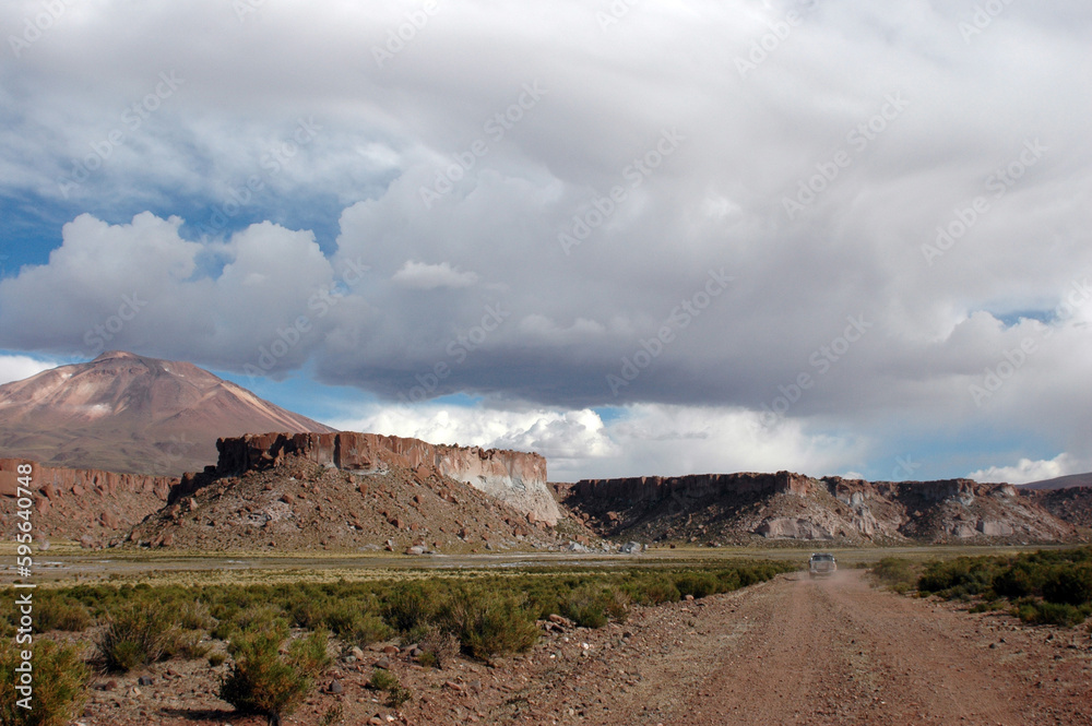 Rural .dirt road in mountains with overhanging clouds on a sunny day.jujuy argentina ,desertic mountain not people , kethelhom,