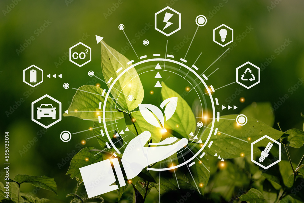 Renewable energy-based green businesses can limit climate change and global warming, Sustainable development and business based on renewable energy, Reduce CO2 emission and co2 footprint concept