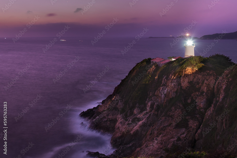 Idyllic landscape of light house and coastline in cape d'aguilar, Hong Kong