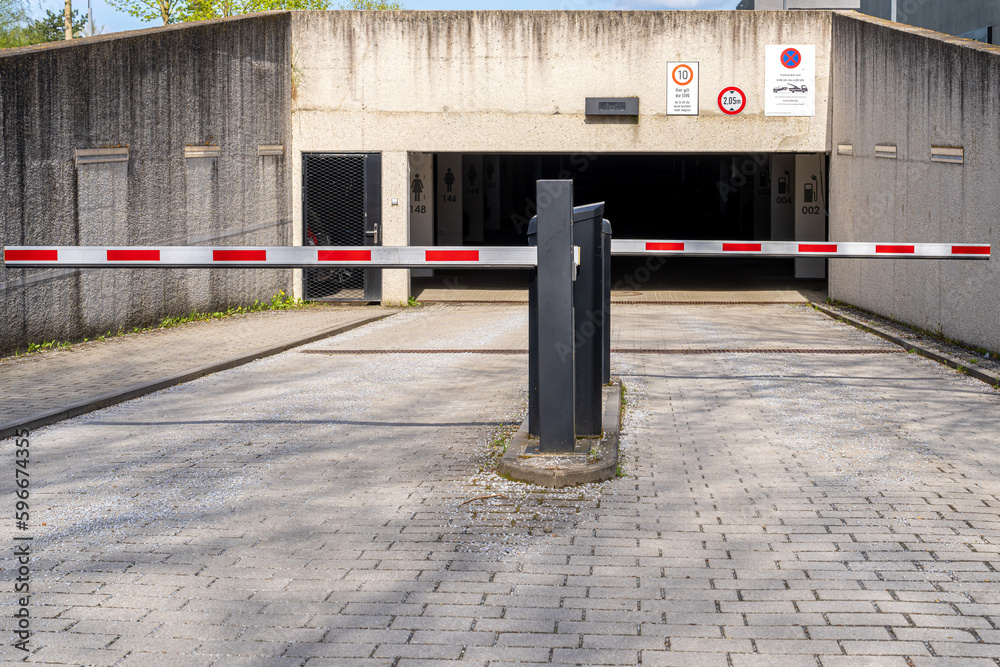 Einfahrt zu einer Tiefgarage - Beschrankt