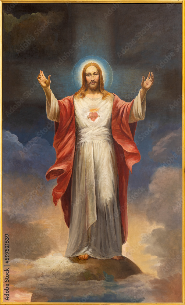 GENOVA, ITALY - MARCH 6, 2023: The painting of Heart of Jesus in the church Chiesa di Santa Maria Maddalena by unknonw artist.