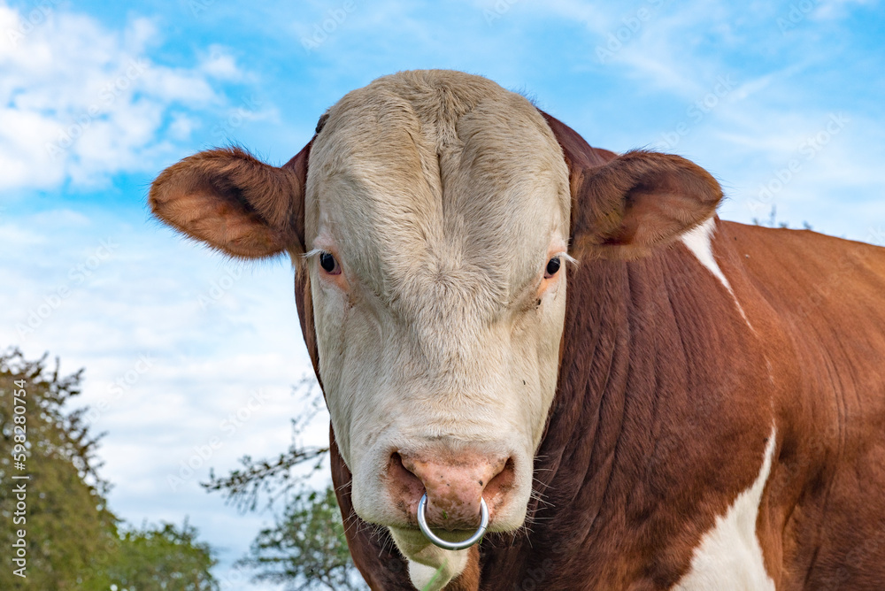 Portrait eines Stiers, der aufmerksam den Fotografen beoabachtet