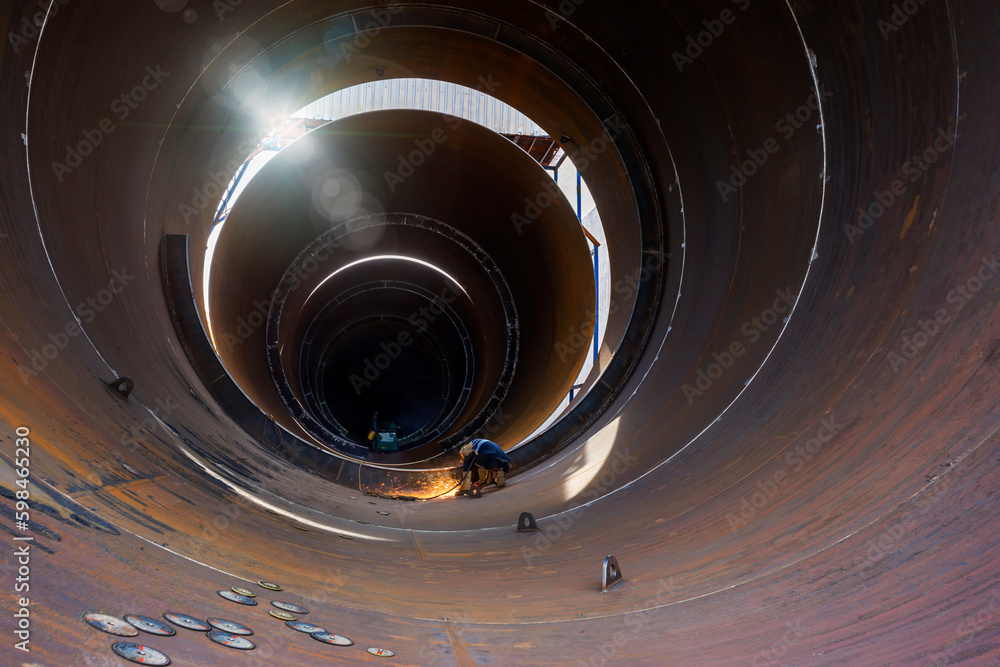 View of manufacture of a large Liquefied petroleum gas ( lpg ) tank. Liquefied petroleum gas (LPG or LP gas) is a fuel gas which contains a flammable mixture of hydrocarbon gases, specifically propane