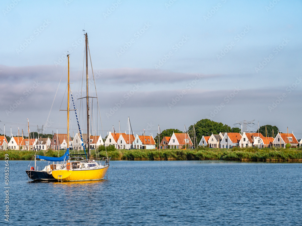 Skyline of Durgerdam village from Buiten IJ river near Amsterdam, Netherlands