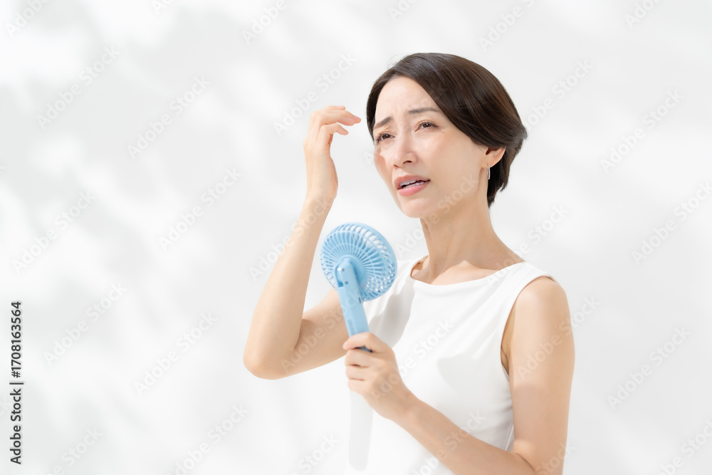 Happy smiling two young beautiful woman wearing white dress taking selfie and headphone wireless while walking in the golden barley filed chiang mai thailand,