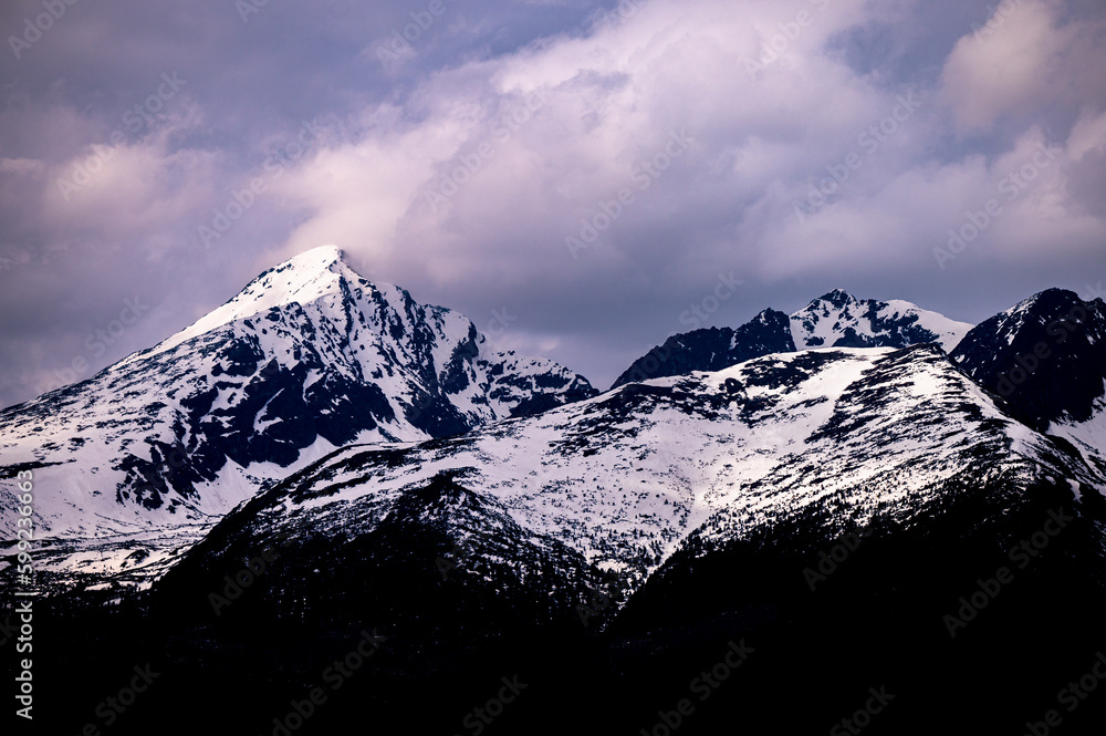 Cloudy winter landscape of the Tatra Mountains. Mount Krivan.