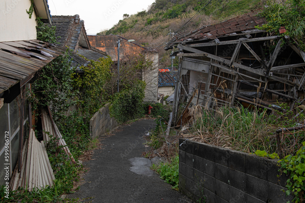 池島炭鉱跡「炭鉱住宅街の廃屋群」
