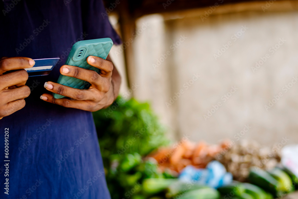 cropped close-up of a young man selling and purchasing online using mobile phone