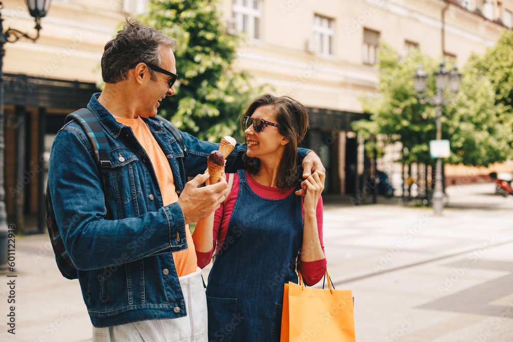 Shopping time. Beautiful couple in shopping. Consumerism, shopping, lifestyle concept