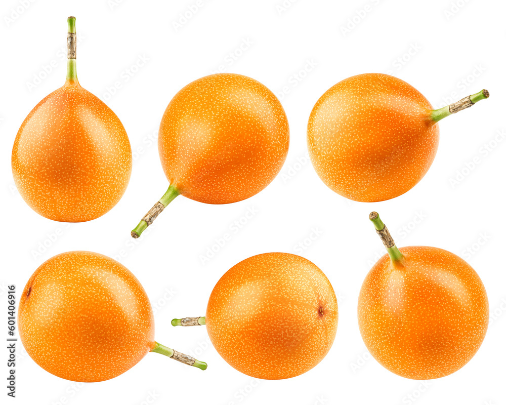 Granadilla or yellow passion fruit isolated on white background, full depth of field