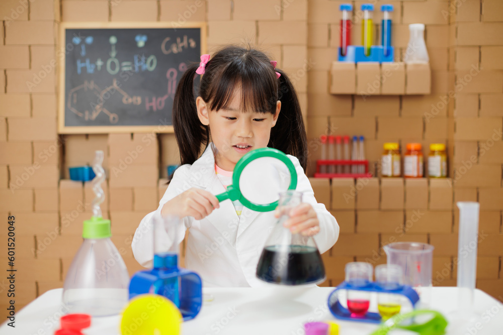 young girl plays science experiment for home schooling