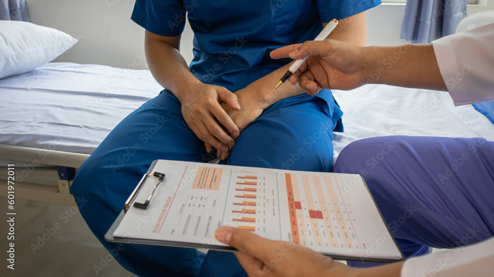 Professional therapist stretching Patients with muscular disease, rehabilitation and treatment of physiological disorders according to the concept of a physiotherapist.
