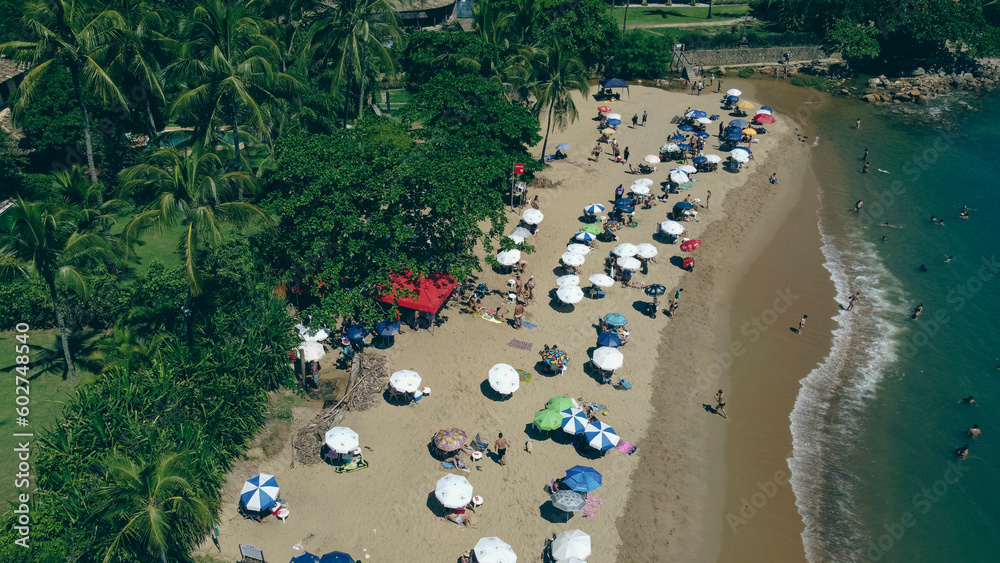 Orla da praia da feiticeira em Ilhabela São Paulo Brasil captada do alto por um drone em 2023.