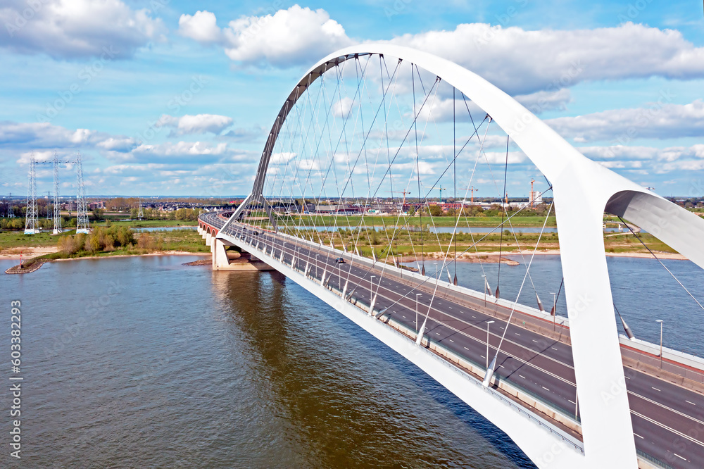 Aerial from the bridge the Oversteek at the river Waal near Nijmegen in the Netherlands