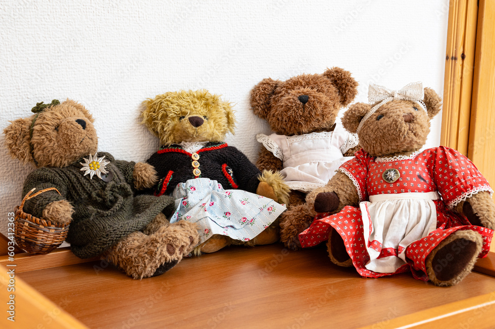 Lady Time ! - Vier kunstvoll und originell bekleidete Teddymädchen