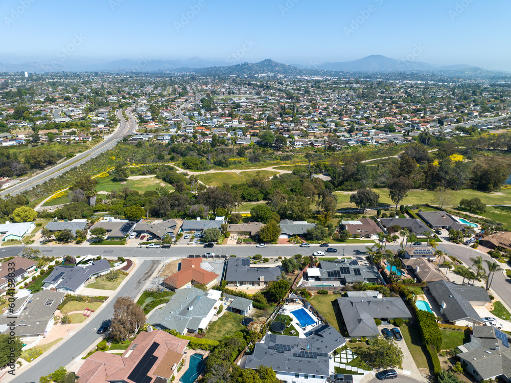 Aerial view of house in La Mesa City in San Diego, California, USA