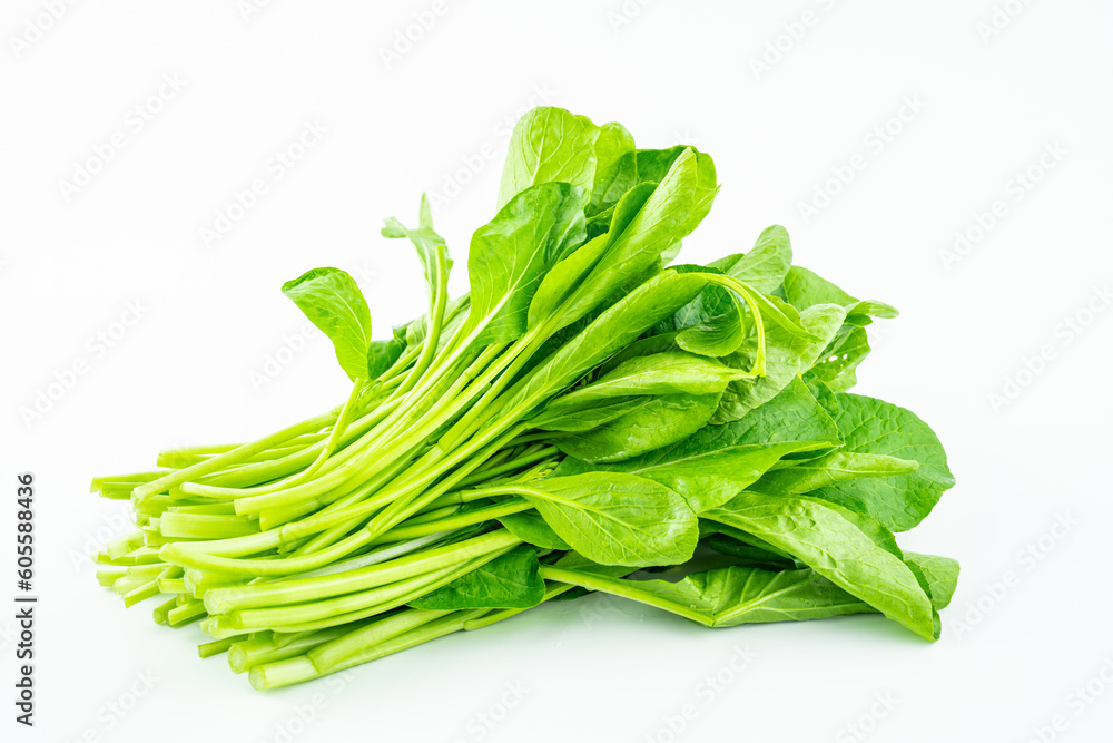 A handful of fresh organic vegetable young cabbage sprouts on a white background