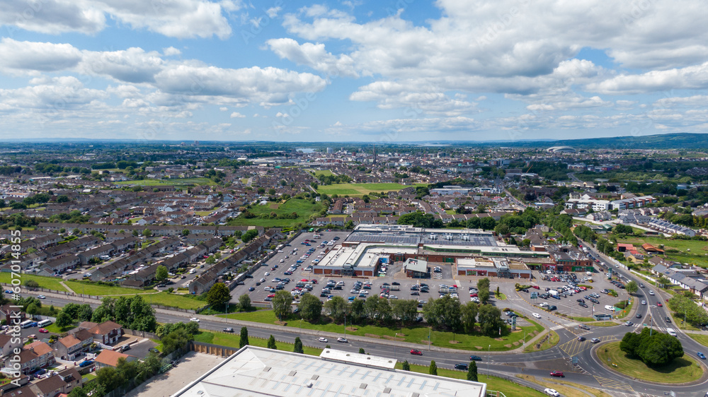 limerick city skyline Ireland. beautiful limerick urban cityscape over the river Shannon on a sunny day with blue skies.