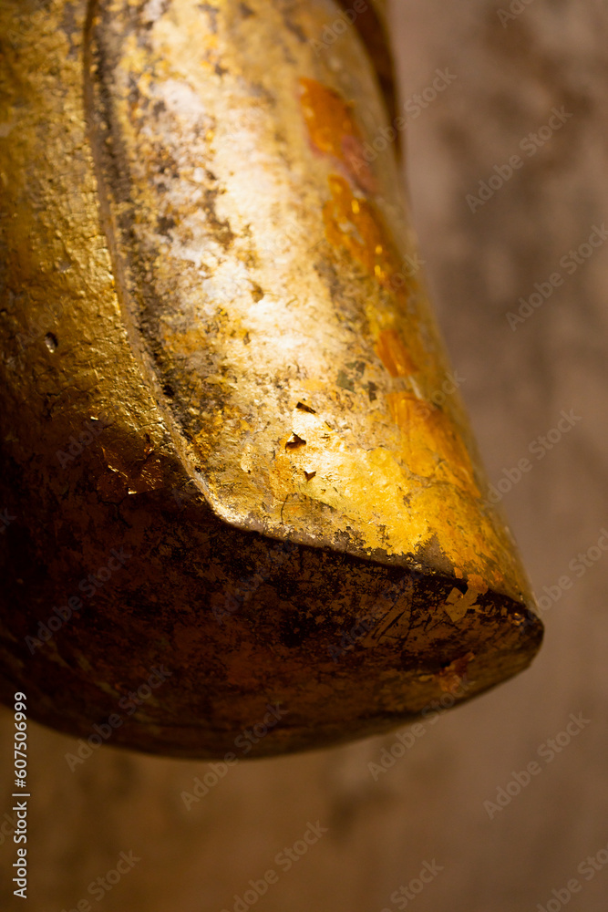 Giant statue of seated Buddha in mara mudra position, enveloped in an atmosphere of silence and mysticism, at Wat Si Chum temple, in the Sukhothai region, Thailand, Southeast Asia