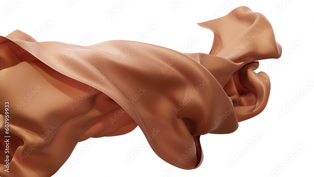 Peach silk fabric design element, 3d rendering silk cloth material flying in the wind. Waving satin cloth isolated on transparent PNG background