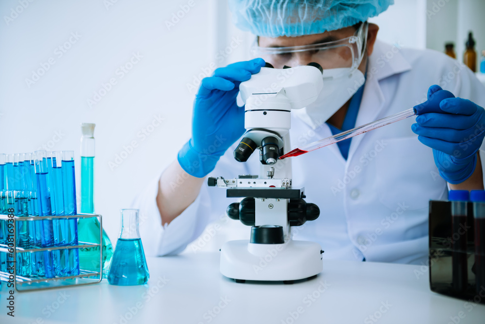 Test tubes in clinic, pharmacy and medical research laboratory and chemical substances.