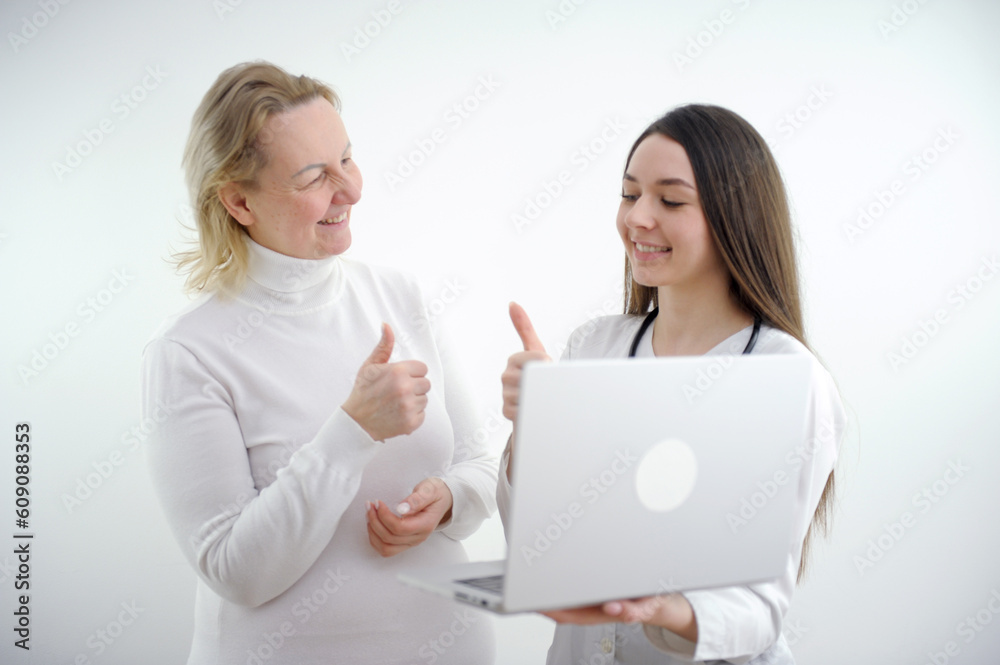 Medical doctor and patient analyzing x-ray photography in hospital. High quality photo