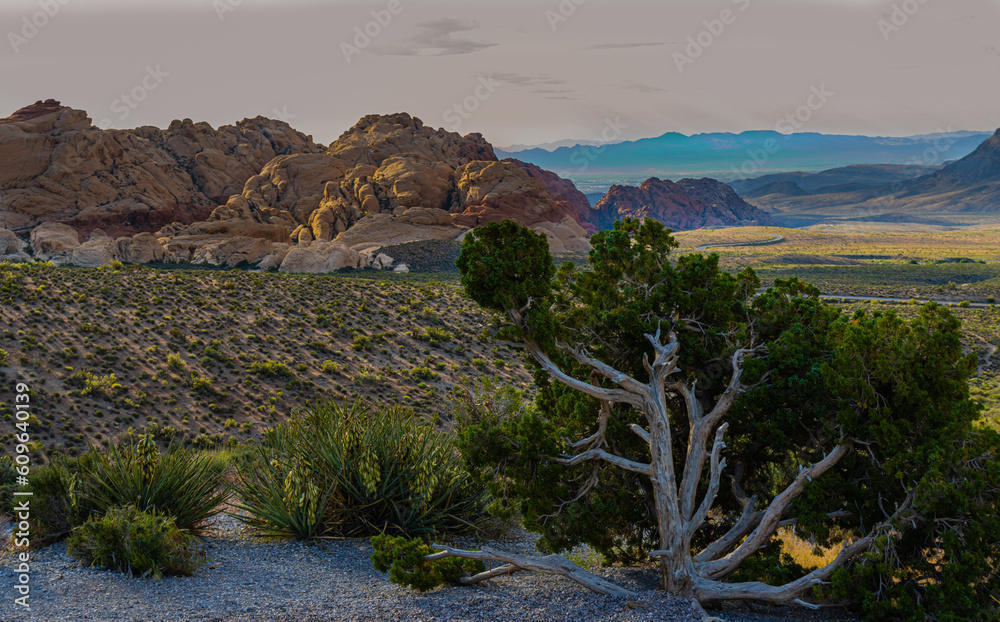 Yucca Cactus and The Calico Hills From The High Point Overlook, Red Rock National Conservation Area, Las Vegas, Nevada, USA