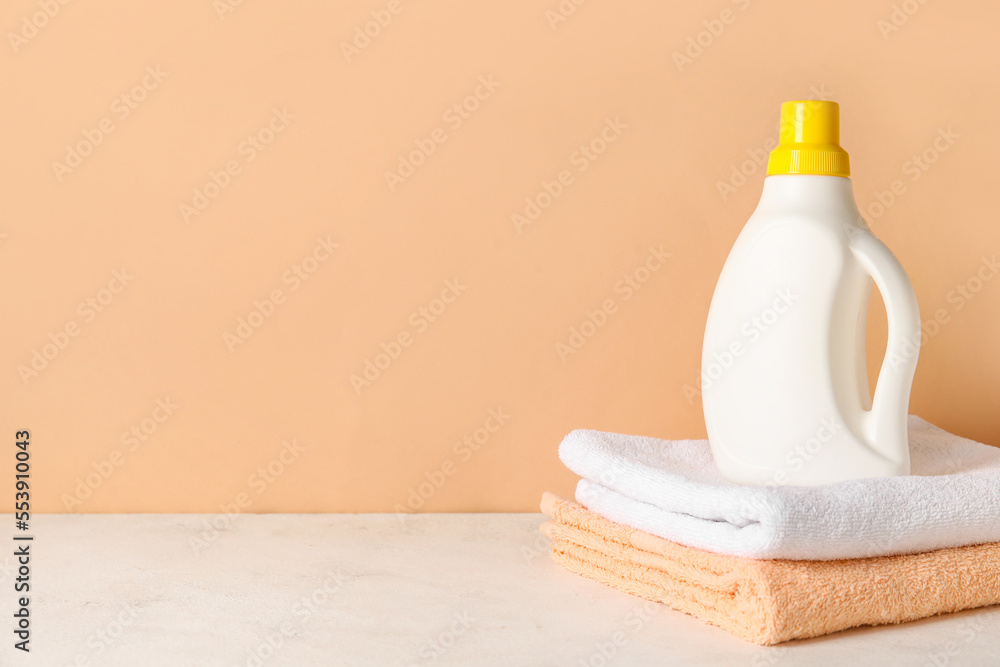 Happy Asian girl listening favourite music playlist on moblie phone application with wireless headphones and dancing isolated on yellow studio background.