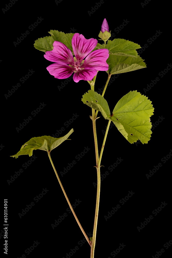 Common Mallow (Malva sylvestris). Inflorescence Closeup