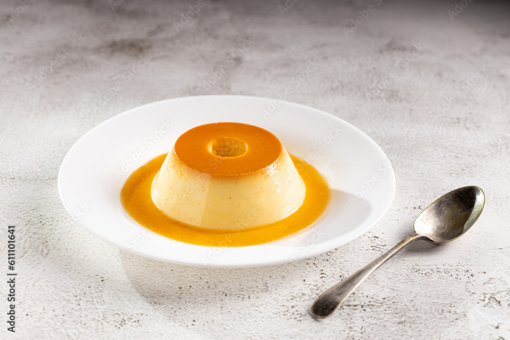Condensed milk pudding. Brazilian traditional pudding dessert.