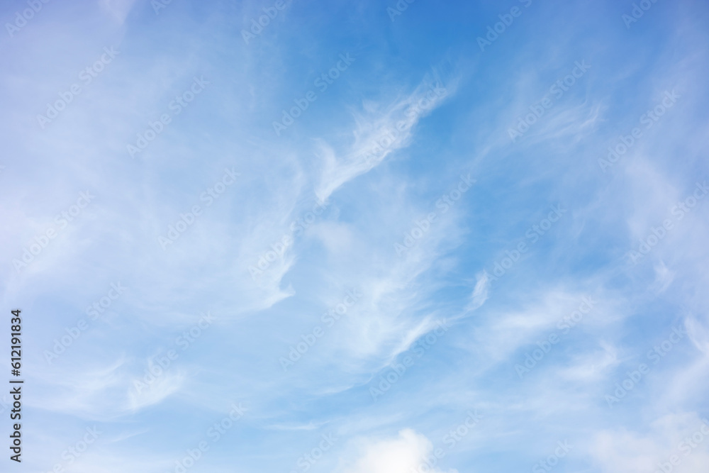 Blue sky background and white clouds soft focus, and copy space horizontal shape.
