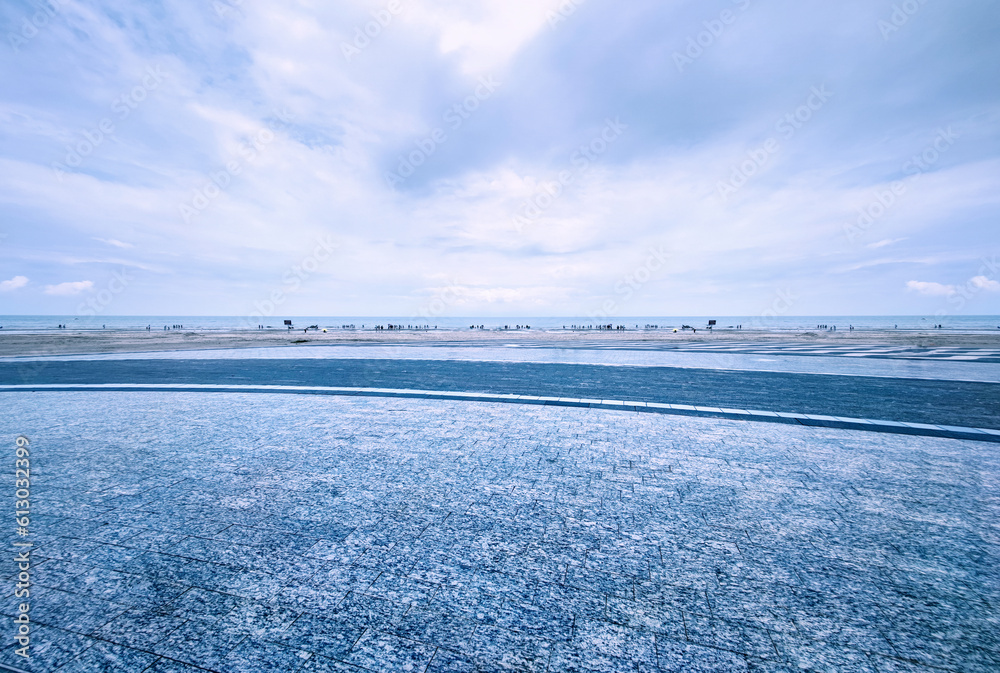 Road and coastline of Yintan Square, Beihai City, Guangxi Province, China