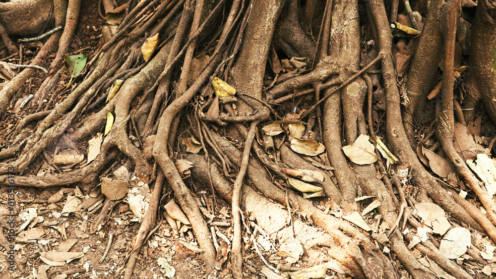 trunks of Ficus bengalensis trees are rooted in the ground
