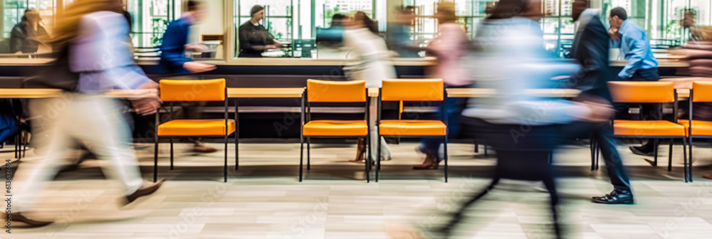 Business people running in office. Businessmen and businesswomen running on modern office corridor.