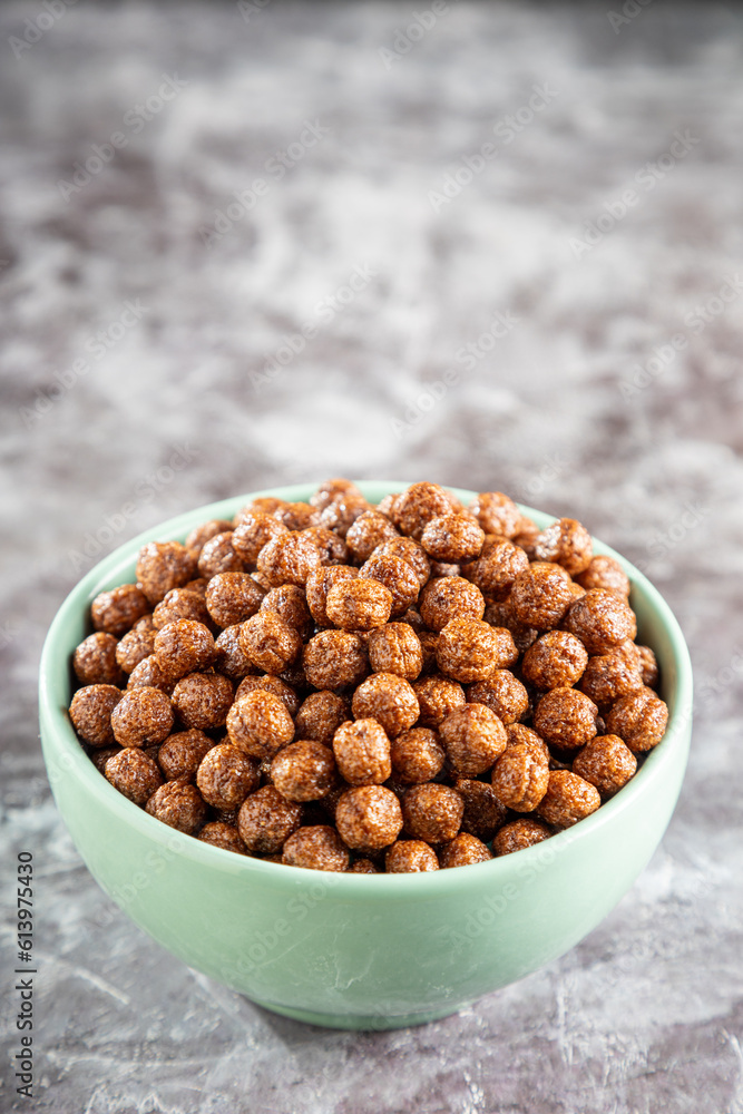 Bowl with cereal chocolate balls.