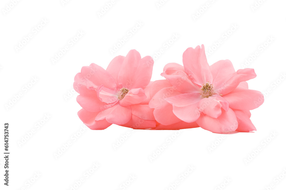 immagine primo piano con delicati fiori di rosa selvatica di colore rosa su sfondo trasparente