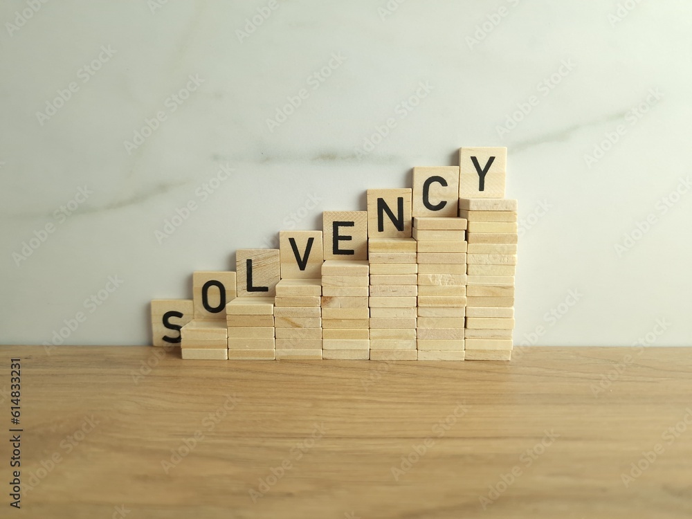 Wooden stairs up with word solvency. Creditworthiness, banking conditions, credit funds