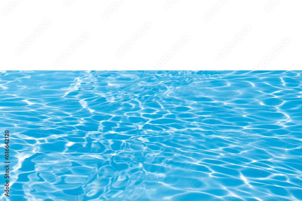 Blue water with ripples on the surface. Defocus blurred transparent blue colored clear calm water surface texture with splashes and bubbles. Water waves with shining pattern texture background.
