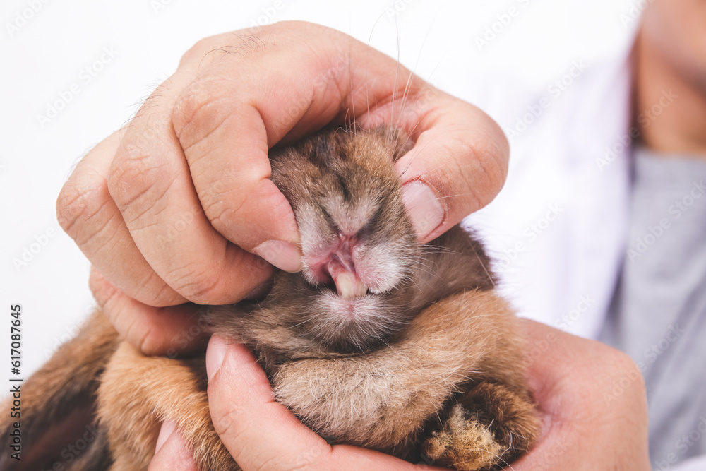 A veterinarian examines the teeth of a little brown rabbit. Small mammals. pet health