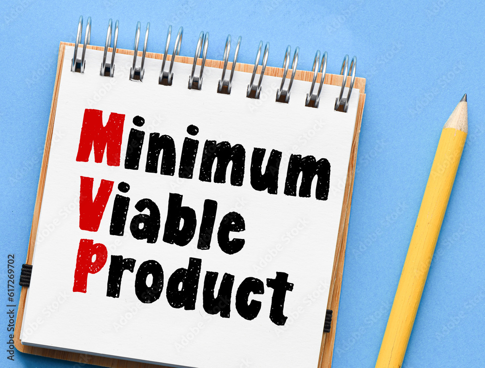 MVP, minimum viable product symbol. Words written in the office notebook.