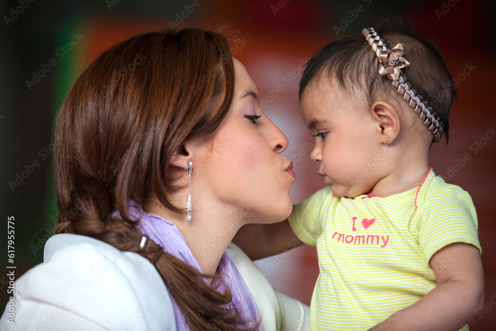 Young mother playing with her baby daughter. Early stimulation for toddlers concept.