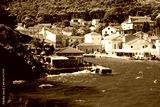 Stormy sea in Mediterranean village Veli Lošinj on Croatia islands in Kvarner Bay Croatia