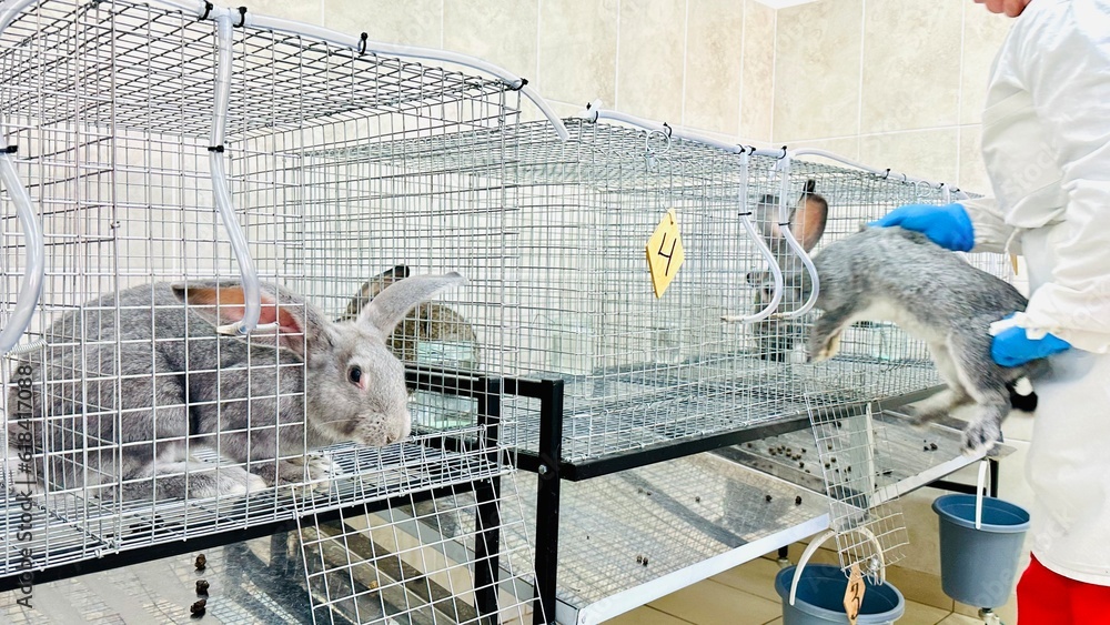 Experimental rabbits in a drug development laboratory. The content of experimental rabbits in the pharmaceutical laboratory