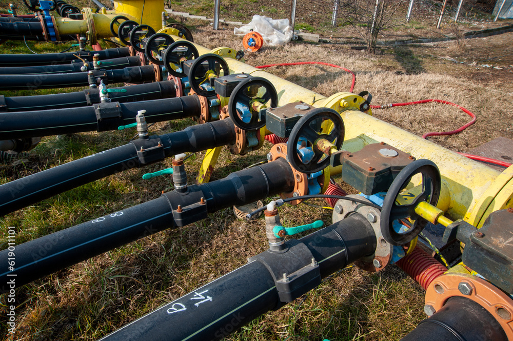 Tubature di produzione e distribuzione di gas. Gasdotto e metanodotto in panorama.