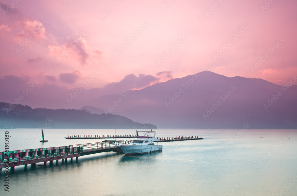 Beautiful sunrise of Sun Moon Lake in Taiwan