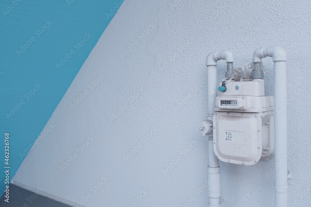 Hand make payment with credit card with NFC contactless technology on terminal device. Blue background