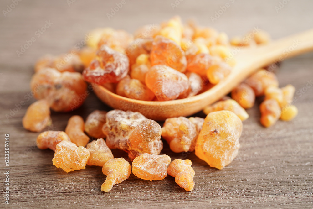 Frankincense or olibanum aromatic resin used in incense and perfumes.