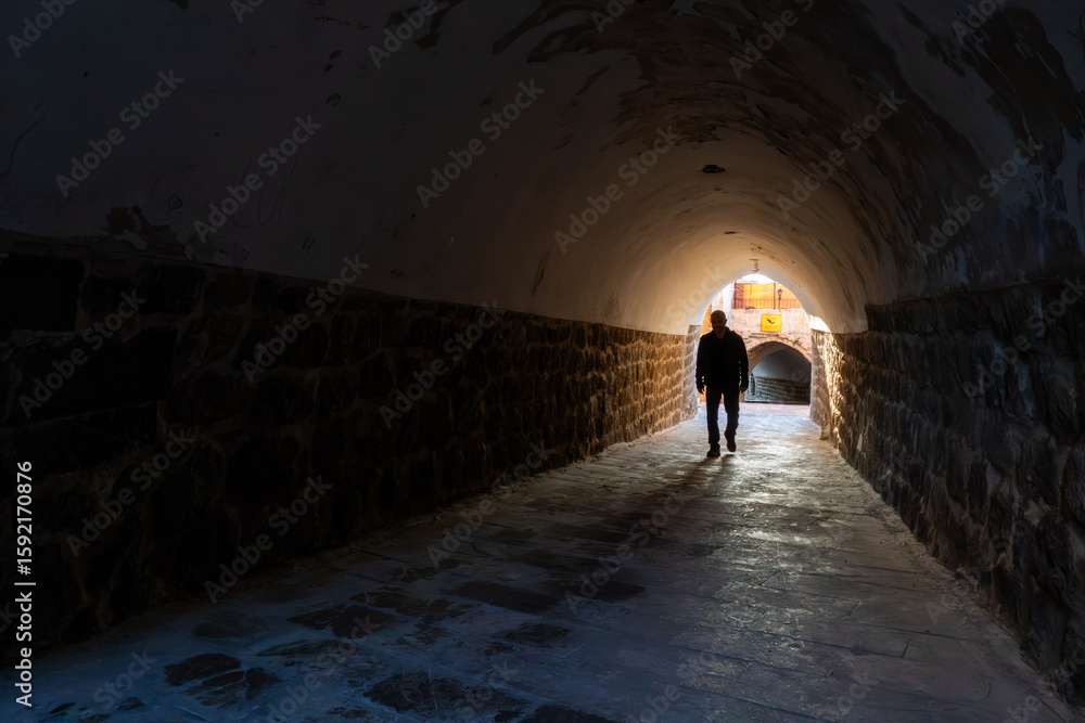 Afro american man over isolated background very happy and smiling looking far away with hand over head. Searching concept.