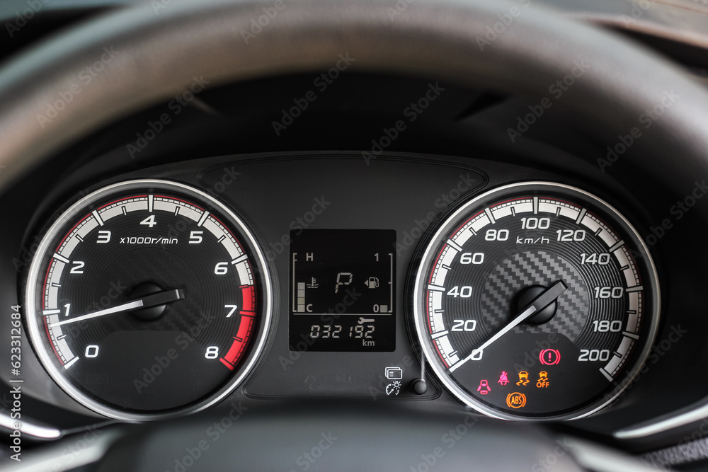 car​ instrument panel, car​ speed motor of​ night, car​ dashboard​ modern​ automobile control​illuminated panel​ speed display.